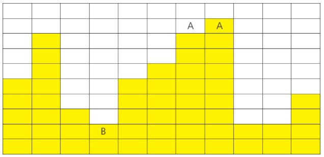 A부분의 상자를 가장 낮은 B부분에 덤프하였으며, A대신 A’부분의 상자를 사용해도 무방하다.