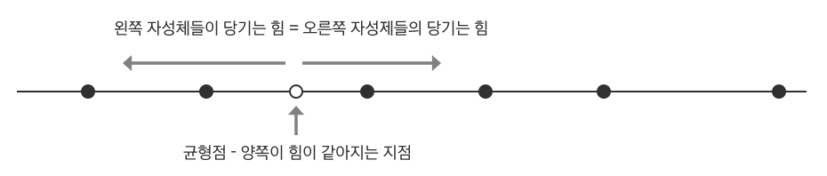 물체에 작용하는 양쪽이 힘이 같은 지점을 찾아보자. n개의 자성체가 있다면 n-1개의 균형점이 존재한다.
